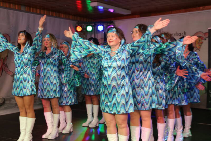 Getreu dem Motto: „Verkleidet, maskiert und voller Schwung, die Burgzunft wird 50 Jahre jung“ reihten sich tolle Aufführungen aneinander. Los legten die bunt bekleideten „Happy Hippies“ aus Wolterdingen zum Hit Waterloo, gefolgt von den „Dance Devilz“, die sich im weißen Outfit und mit Headsets ausgestattet nicht nur als „D-Boys“ präsentierten, sondern mit einer perfekten Performance für Begeisterung sorgten. Mit ihren blau-silbenen Glitzerkleidchen und den entsprechenden ABBA Hits tanzten sich die Turnerfrauen in die Herzen der Zuhörer und auch bei ihnen wurde lautstark nach einer Zugabe verlangt. Die Burgzunft Jugend zeigte sich als flotte Aerobic Tanzgruppe und auch hier sprang der gute-Laune-Funke schnell zum Publikum über. Anmutig und einfach bezaubernd dann der orientalische Showtanz der Garde aus Vöhrenbach, der mit Melodien aus dem Musical Aladin für viel Applaus sorgte. Als Bauarbeiter-Trupp mit Kappo Saskia erschien der Sportverein und interpretierte tänzerisch die unendliche Geschichte der Hammereisenbacher Straßensanierung.